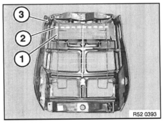 If necessary, remove mat (1) from spring wire (2) of backrest frame (3).