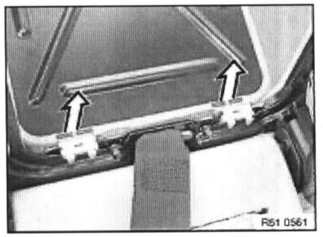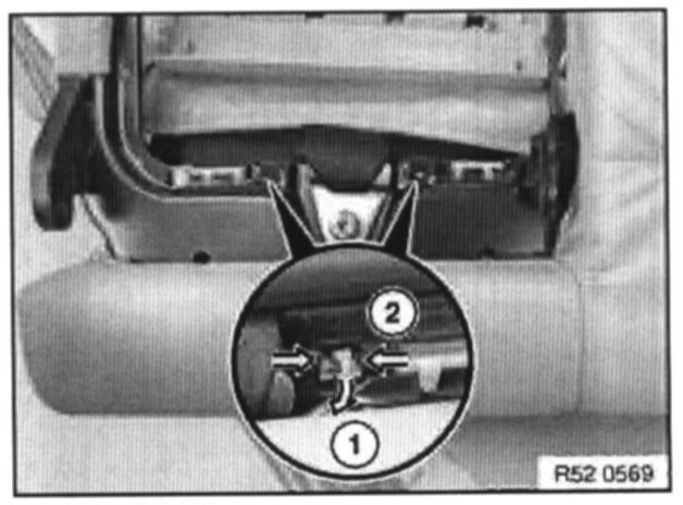 - Carefully press together clip feet (2) of cassette and remove cassette towards rear at bottom paying attention to clips at side and top.