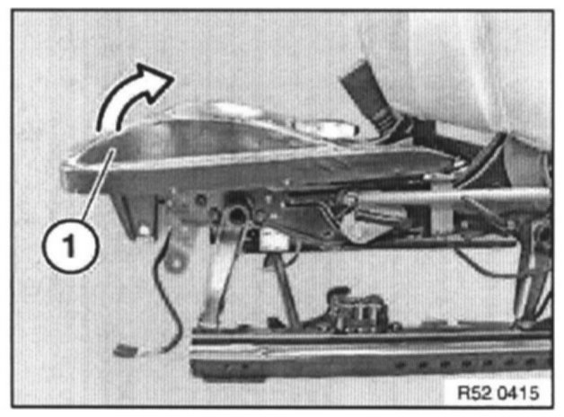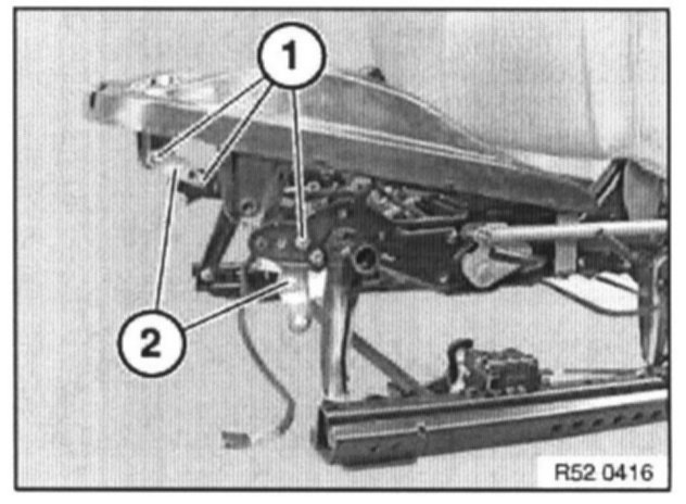 Detach seat pan (1) on left/right backwards/top from mount (2) and remove.