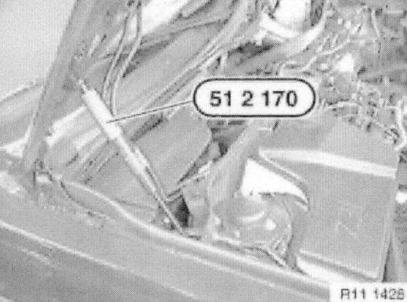 Open engine hood fully and reattach damper with special tool 51 2 170 to hood.