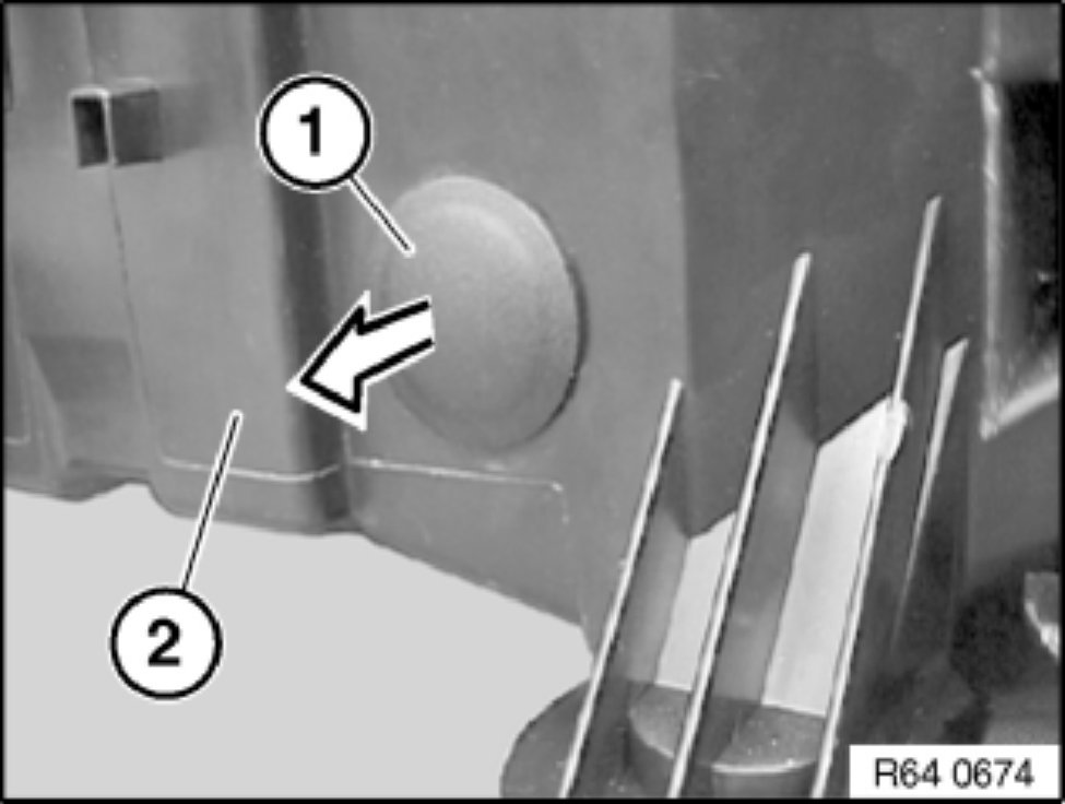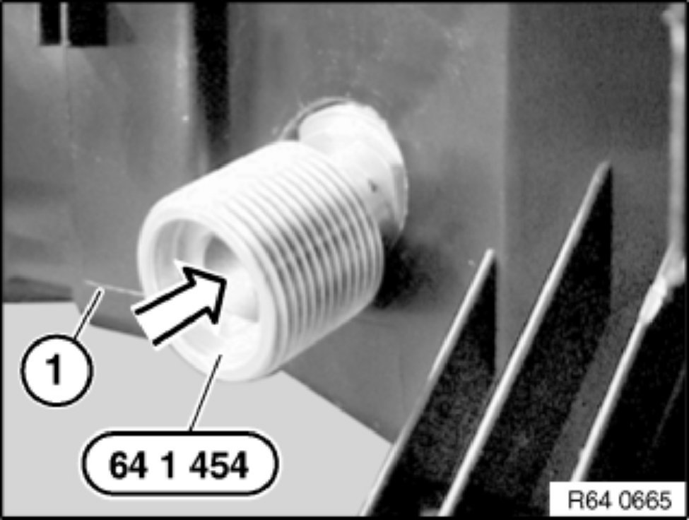 Attach guide for spray lance 64 1 454 as illustrated into hole in A/C housing (1).