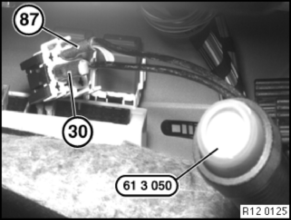 Connect special tool 61 3 050 to terminal (87) and terminal (30).