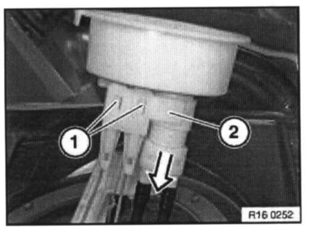 Carefully pull off connection (2) of suction jet pump towards bottom.