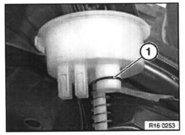 Replace O-ring (1) on fuel level sensor. Before fitting, apply a light coat of engine oil to O-ring.
