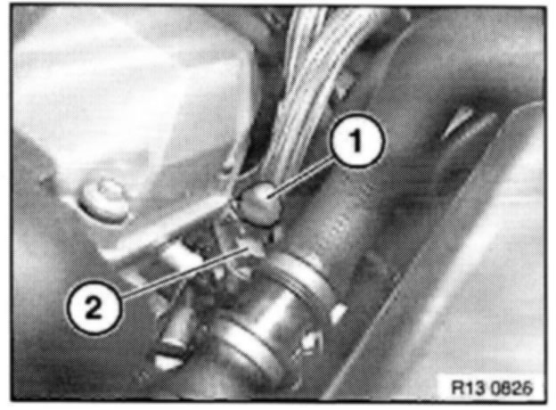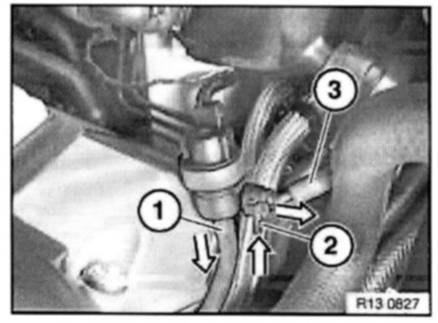 Press locking ring (2) and detach hose (3) from tank venting valve.
