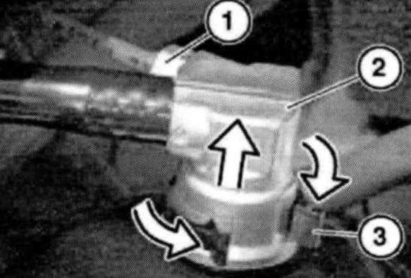 Remove connector together with pipe coupling from welded bracket on wheel arch at rear right.