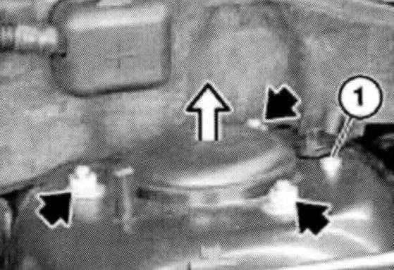 Removing and installing/replacing pipe (1) (black) between valve block and accumulator unit: