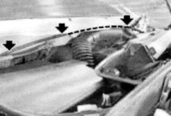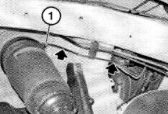 Release pipe following its progression (arrows) and press air spring strut into appropriate position in order to facilitate access to pipe connection.