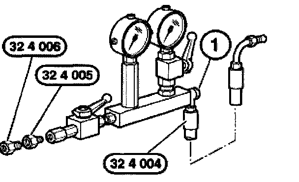 Screw special tools 32 4 006/32 4 005 onto special tool 32 4 000 and connect pressure hose.
