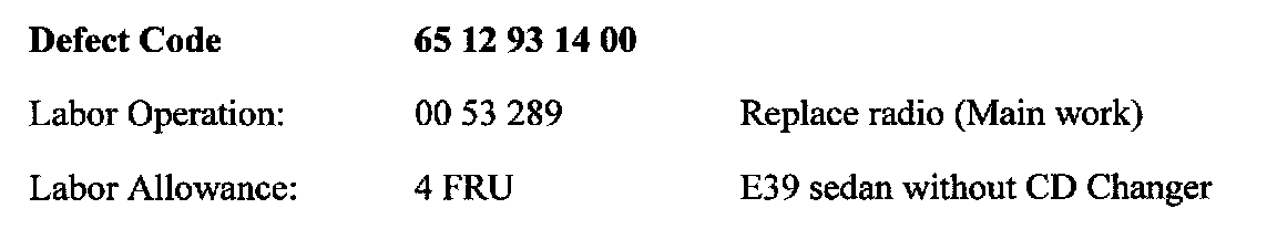 Software error in the BMW Business BM53 Board Monitor Radio SW # 6.3 and 7.0