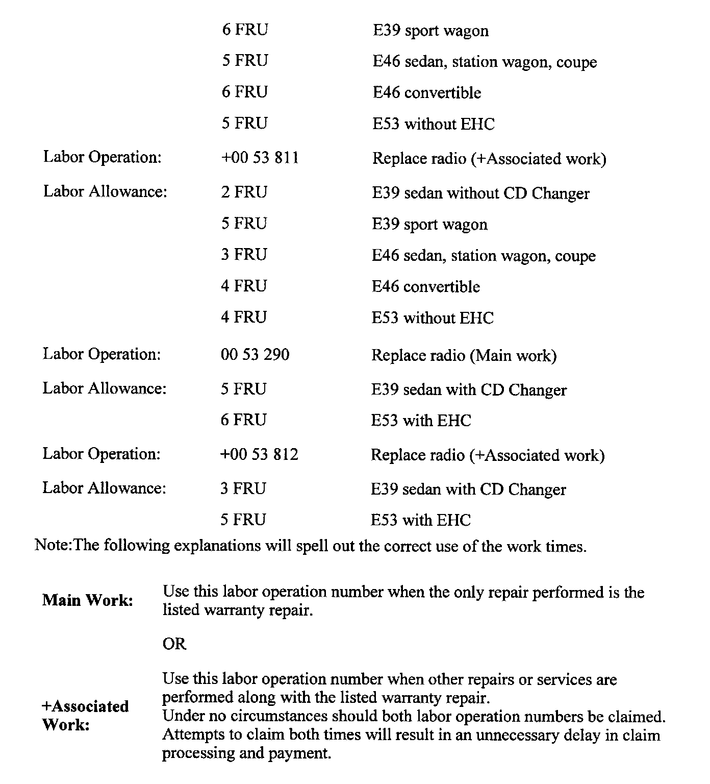 On a customer complaint basis only, replace the BMW Business BM53 radio