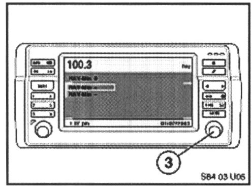 Select "NAV-Min +1 to raise the navigation volume by pressing the right rotary knob (3).