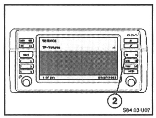 In "Service Mode" select "TP-Volume" with the arrow button (2).