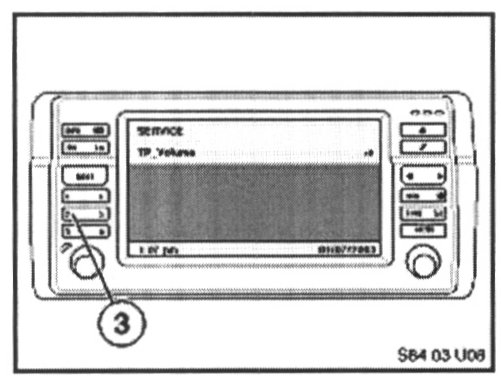 In mode "TP-Volume" raise the Navigation volume by pressing the "Station 2" button (3).