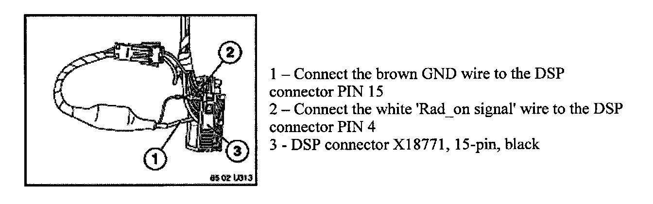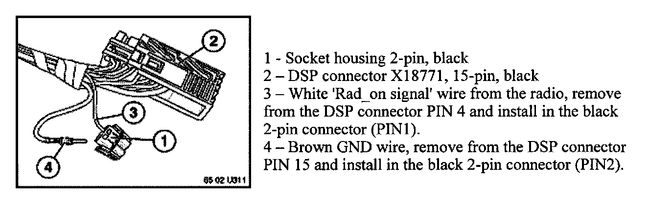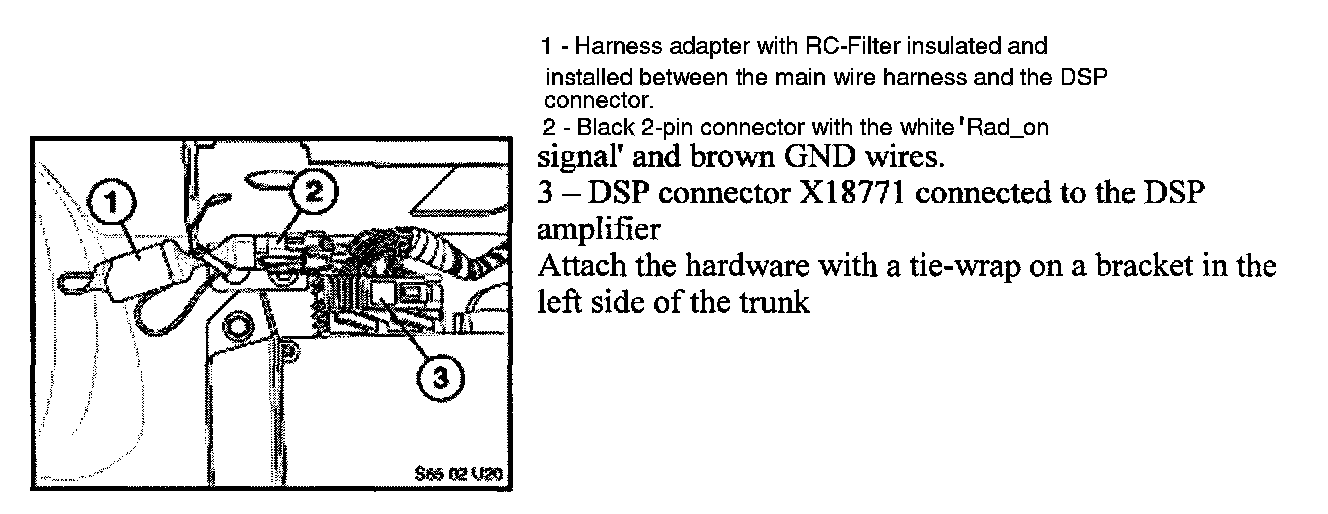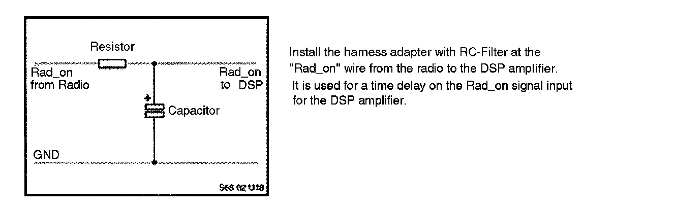 After installing the harness adapter with RC-filter, the DSP amplifier switches on with a time delay of approximately 5 seconds after starting the vehicle.
