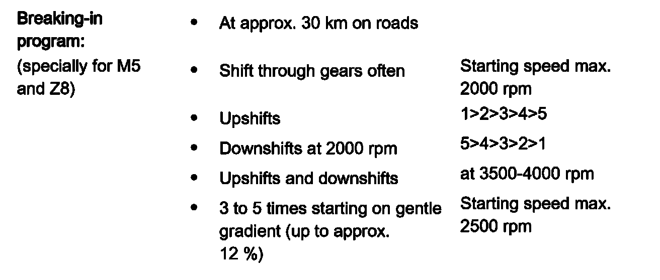 Note: Experience shows that approx. 800 to 1000 gearshifts are required for an optimally broken-in lining when a car is driven �normally� (advise customer).