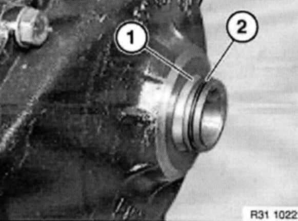When the front axle differential is installed on the oil sump, the assembly ring (1) is forced over the sealing ring (2) and remains fitted.