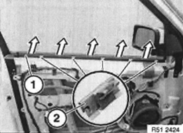 For installation, coat window cavity seal (1) with turpentine substitute (sourcing reference: BMW Parts Service).