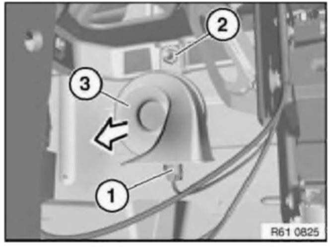 Release nut (2) and remove air horn complete with holder in direction of arrow.
