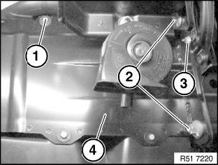Release screws (1) and remove strut (2).