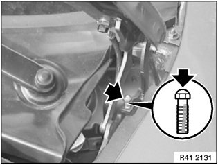 Plastic head of stop screw must not be damaged or missing, replace engine compartment lid hinge if necessary.