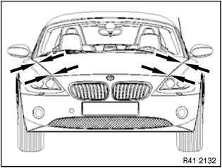 NOTE: Height adjustment of engine compartment lid to side wall by means of stop pads.