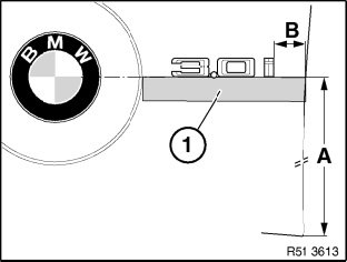 Attach adhesive tape (1) from centrepoint of BMW badge to distance (A).