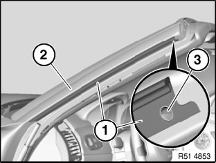 Position trim strip (1) over aperture (3) in A-pillar (1) and stick on parallel to A-pillar (1).