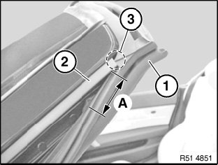 Attach 6 mm dia. butylene tape between seal (1) and trim strip (2) according to measurement (A).