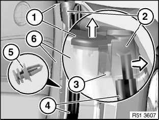 Following parts of side trim top section (6) must not be damaged or missing:
