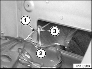 Lay emergency release cable (2) correctly in bore (1) and panel (3) for luggage compartment partition.