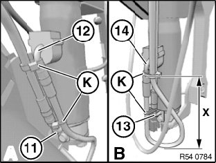 First secure opposite each other with 2 cable ties (K), then feed upper line with a loop (x = 100 cm) upwards again.