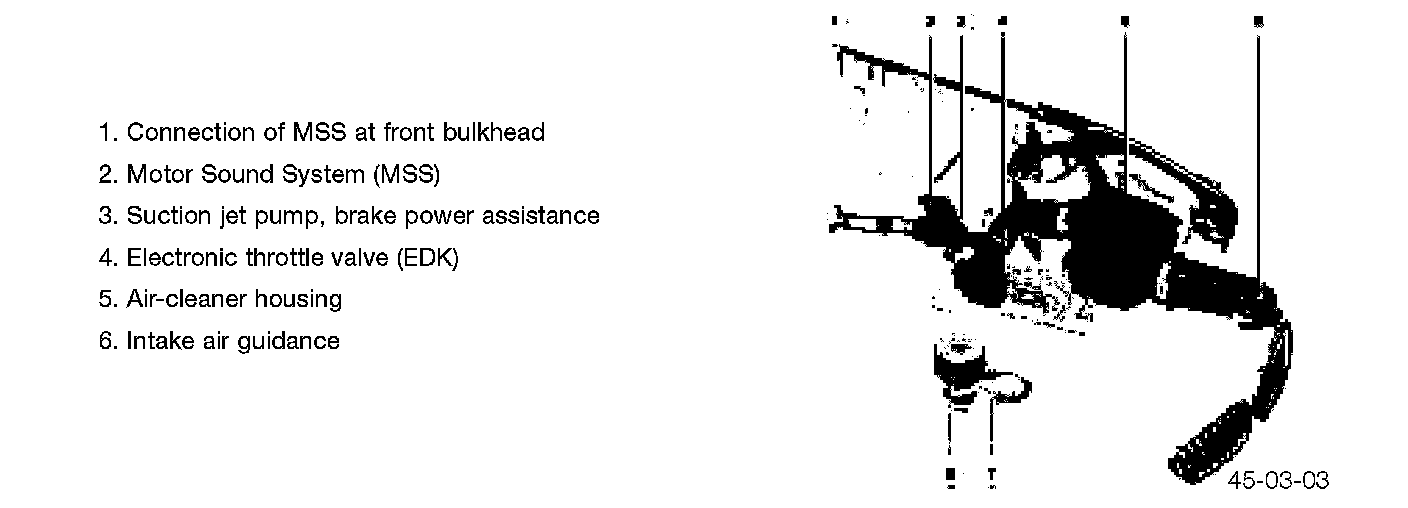 The fresh air system of the (E85) Z4 is specifically configured for the M54 engine and on the M54B30 engine, there is an integrated Motor Sound System (MSS).