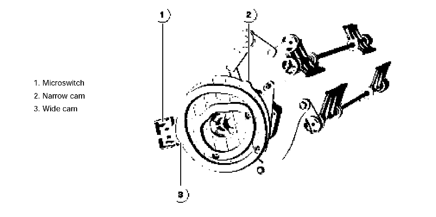The cam disc moves the air distribution flaps by central kinematics. The actual position of the cam disc and stepper motor is detected by 2 small cams of different width that activate a microswitch.This microswitch provides feedback to the IHKS Control Module which corresponds to the air distribution flaps and their positions.