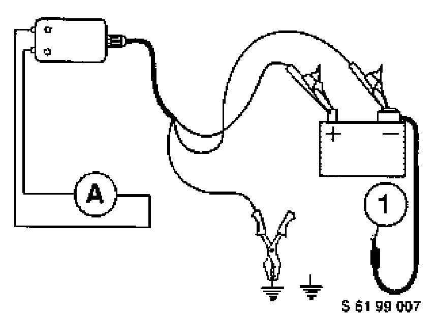 To measure the closed-circuit current, connect the multimeter to the adapter and then unscrew the battery ground lead (1) from the central ground terminal point on the body.