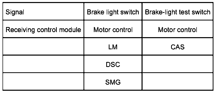 The two signals of the brake-light switch behave in relation to one another according to the following table: