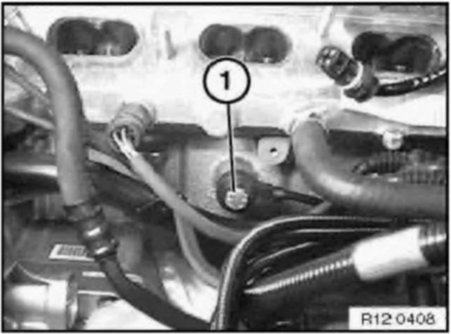 Release screw (1) and remove knock sensor for cylinder bank 1-3.