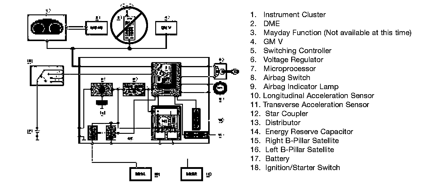 ^ Supplies voltage to the satellites and the pressure sensors (SBSL,SBSR and STVL,STVR) and supplies the voltage reserve for component activation.