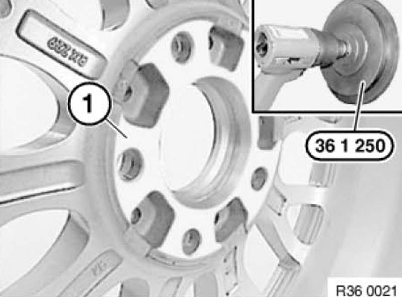 Note: To release and tighten down lockable wheel stud, use a matching adapter from special tool 36 1 300 (wheel stud adapter set).