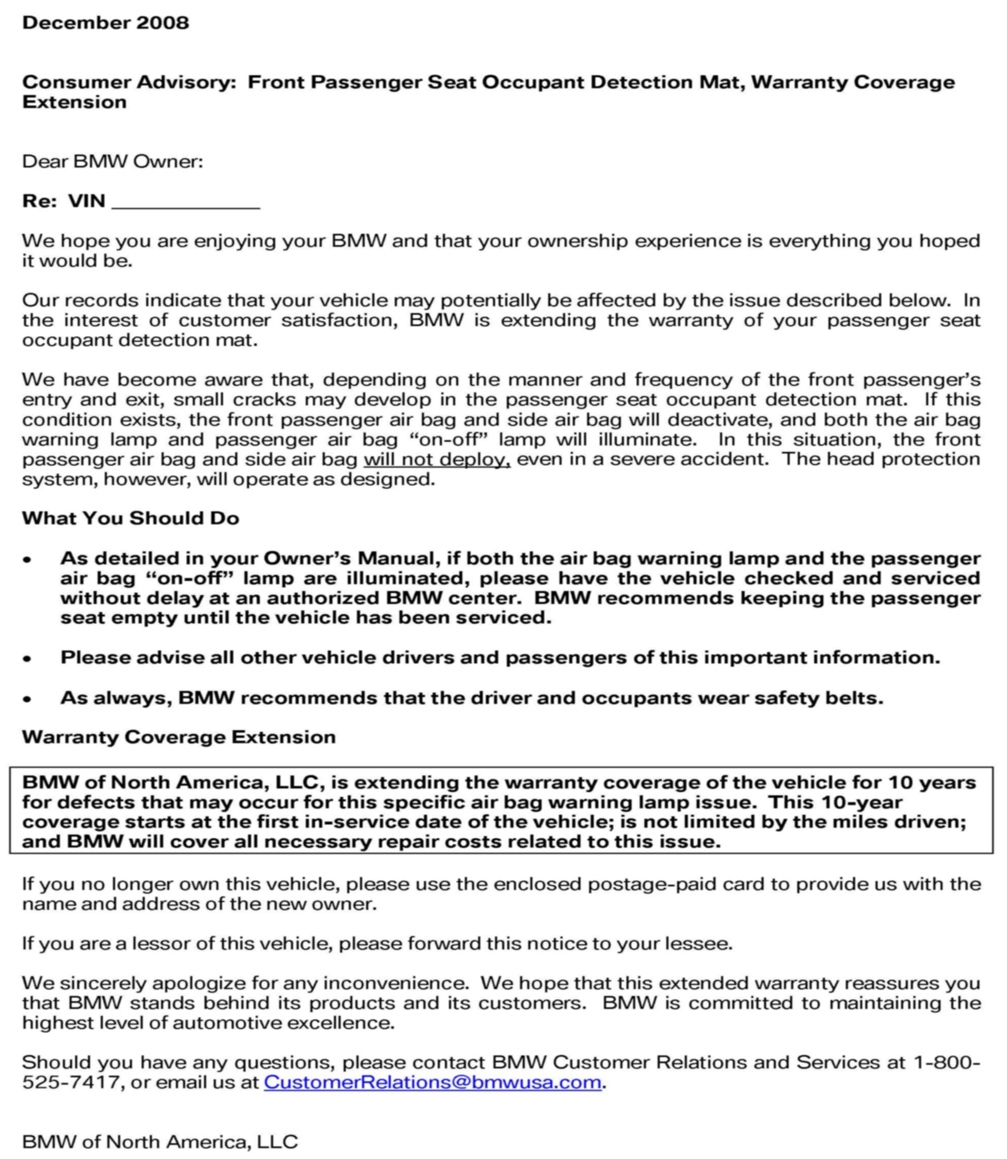 Campaign - Airbag Warning Lamp For OC3 Seat Mat Fault