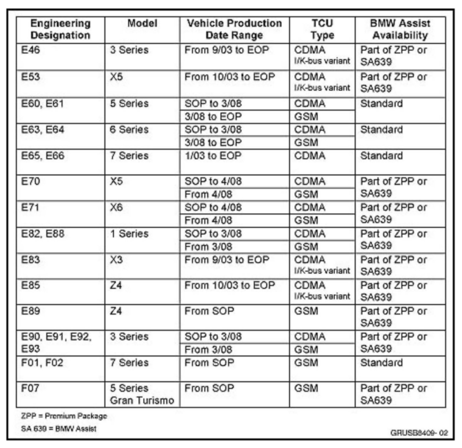 All equipped with a CDMA TCU and BMW Assist (option 639) or Premium Package (ZPP)