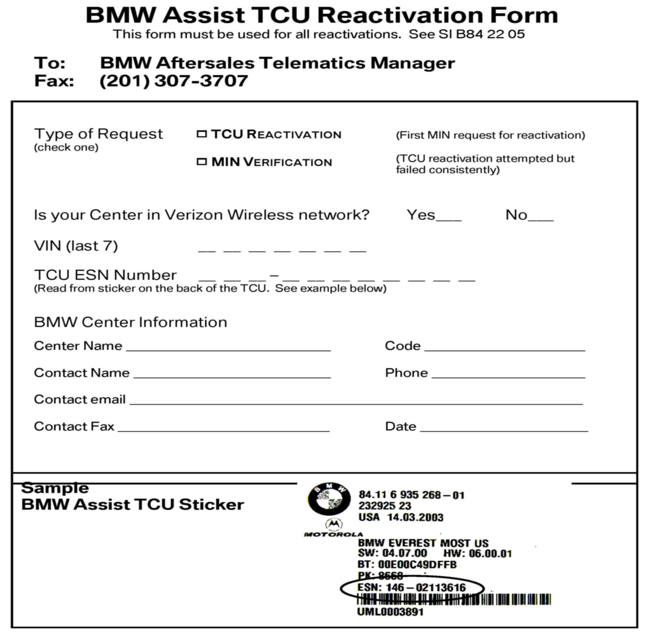All CDMA (Code Division Multiple Access) replacement units from parts are deactivated and must be activated before handing over the vehicle to the customer. This is not related to the customers BMW Assist account status being active. In order for BMW Assist to work properly, the replacement procedure outlined below must be carried out.