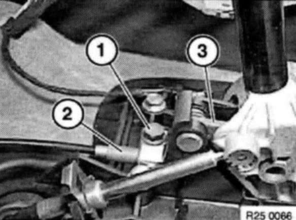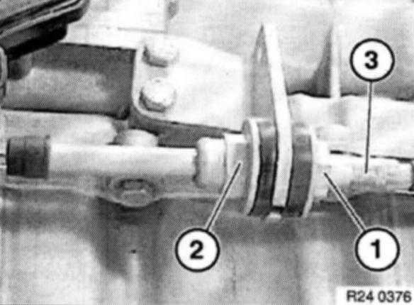 Release screw (1) and remove interlock cable (2) from interlock lever (3).