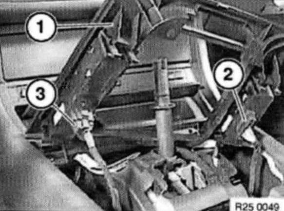 Lever trim (1) out of center console, disconnect cable plugs (2 ... 3) and remove trim (1).