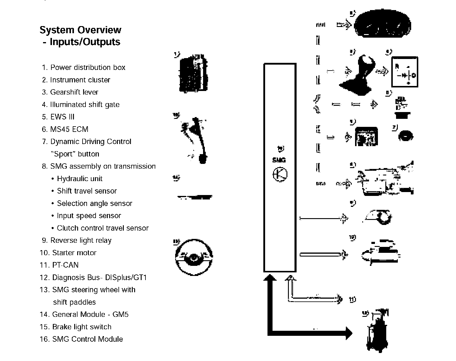 (E85) Z4 SMG 6-Speed Sequential Manual Gearbox (if equipped)The optional Sequential Manual Gearbox (H-SMG) is a further development of the (E85) Z4 GS6-37BZ 6-speed manual (H-gearbox). Compared to previous SMG technology, changes include: