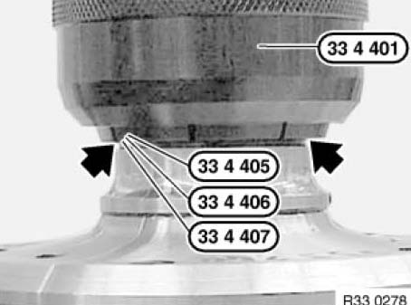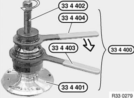 Compress special tool 33 4 401 with wrenches 33 4 403 and 33 4 404 until special tool can still just be turned in groove.