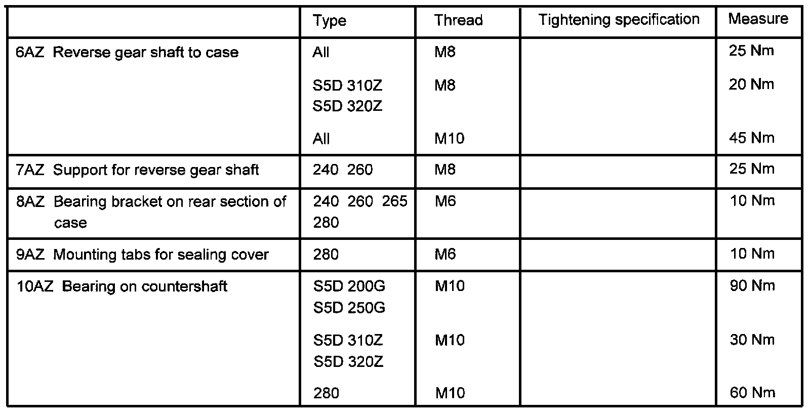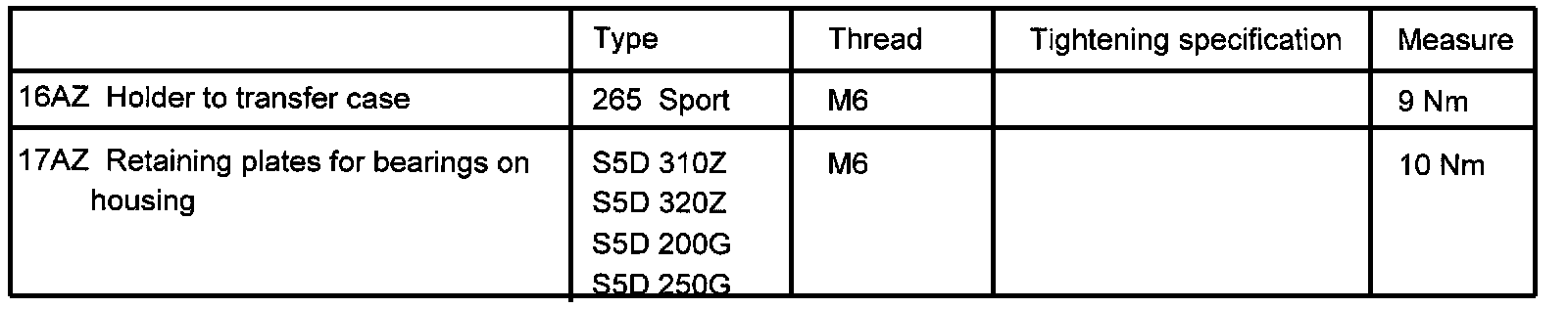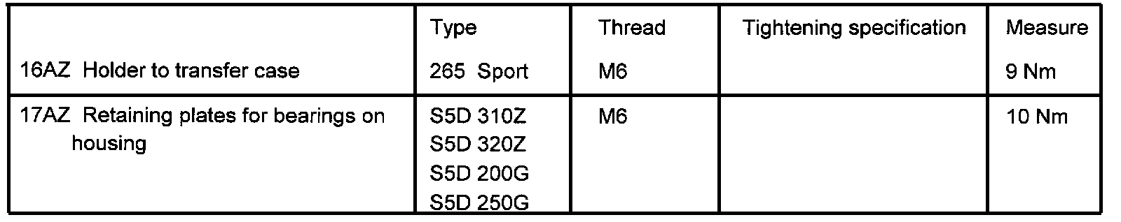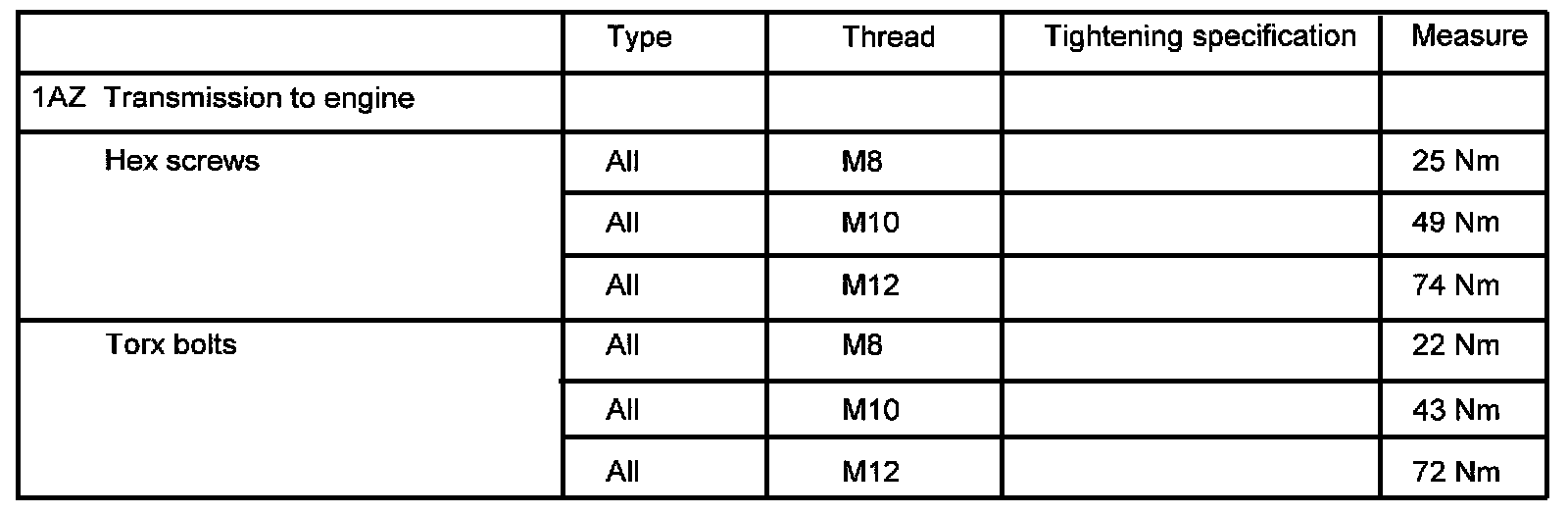 Tightening Torques