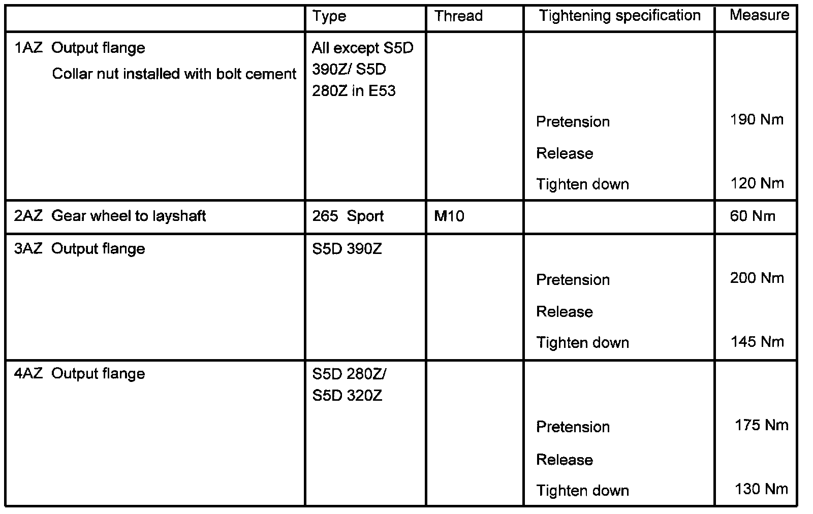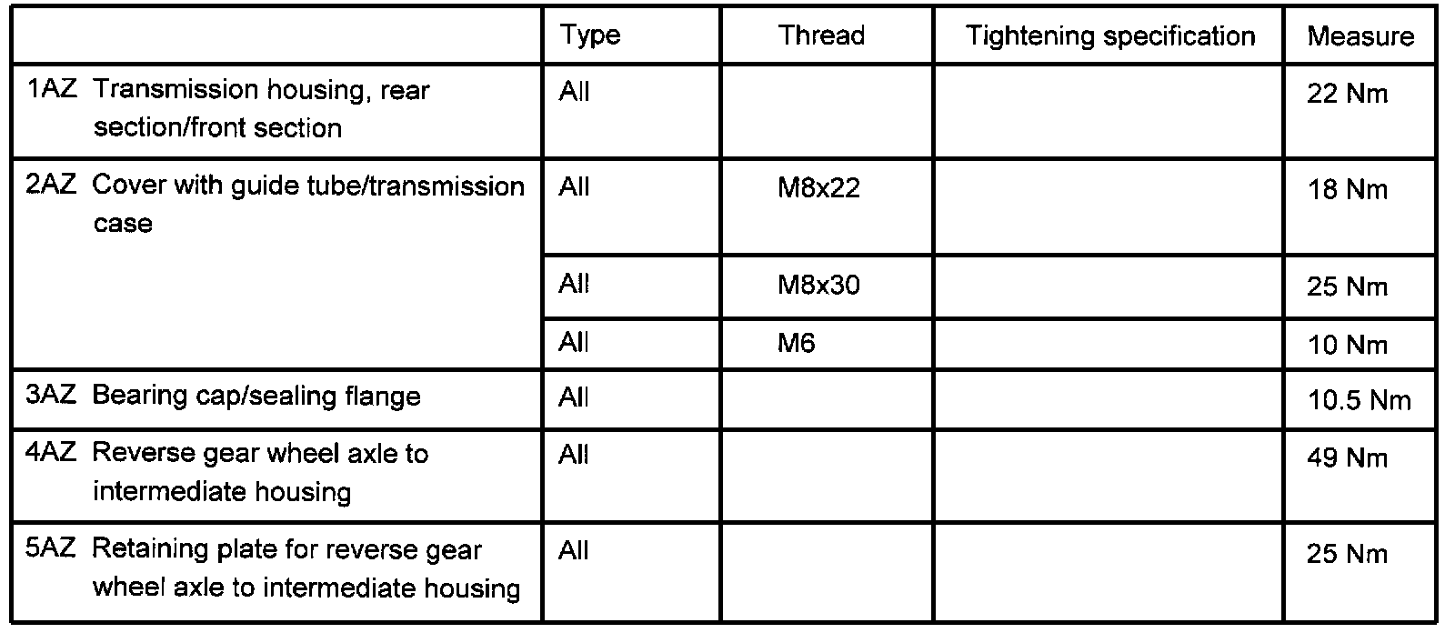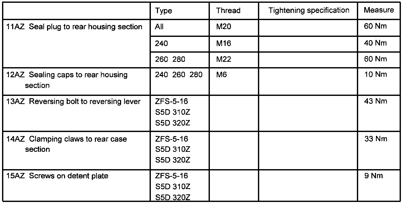 Tightening Torques
