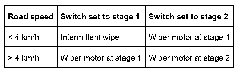 Wiper stages "1" and "2" are controlled depending on the depending on the car's road speed.