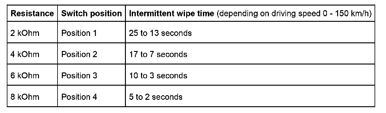 A potentiometer in the form of a rotary switch is built into the wiper switch to vary the setting of the intermittent wipe interval. The rotary switch can be set in four stages. Based on different resistance values. The general module 5 can detect the switch position and thus the preselected intermittent wipe time.